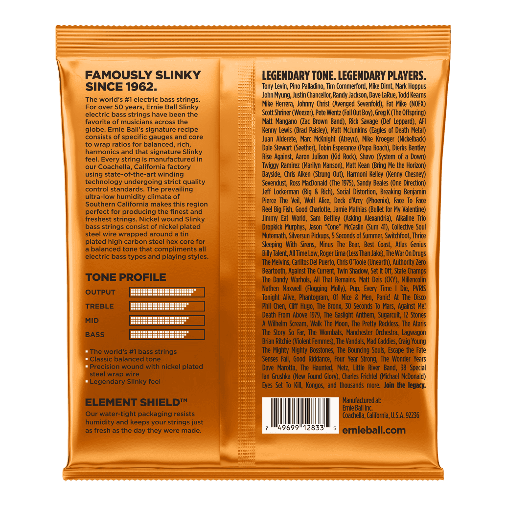 Each string is manufactured with a nickel-plated steel wrap wire around a high-carbon, tin-plated, hex-shaped steel core. This classic construction is what gives “Slinkys” their world-famous reputation: a bright, balanced output that cuts through a mix without sounding harsh. Whether you play fingerstyle, with a pick, or use aggressive slap techniques, these strings respond with precision.