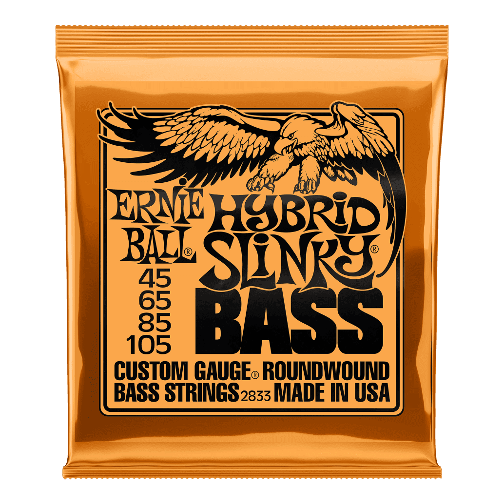 Ernie Ball Hybrid Slinky Electric Bass strings are the preferred choice for players who refuse to compromise. By pairing .045 and .065 treble strings with .085 and .105 bass strings, Ernie Ball has created a set that feels fast under the fingers for lead lines and slapping, while remaining rock-solid for heavy rhythm work.